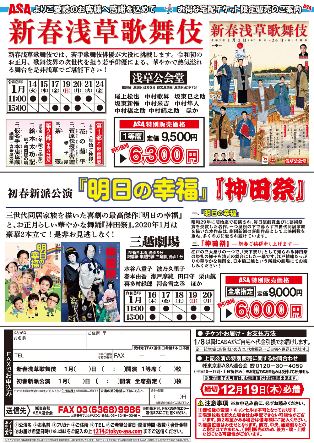以下「今すぐ注文する」より1,公演名/2,お名前(フリガナ)/3,ご住所/4,TEL/5,ご希望公演日時・券種・枚数/6,合計金額/7,お届け希望日時をご記入の上、お申し込みください。